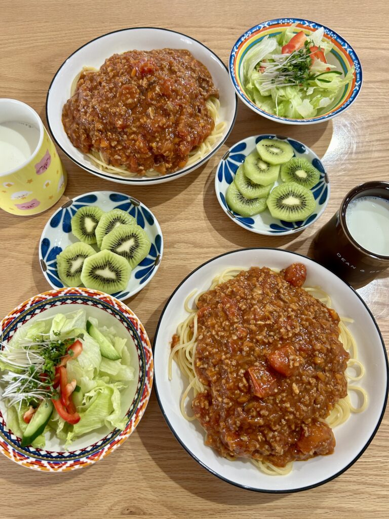 お昼ごはんはミートソースパスタにした!